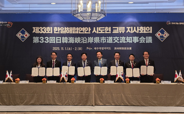 日本国福岡県、佐賀県、長崎県、山口県及び大韓民国釜山広域市、全羅南道、慶尚南道、済州特別自治道の知事及び市長は、2025年11月1日、大韓民国済州特別自治道において第33回日韓海峡沿岸県市道交流知事会議を開催した。